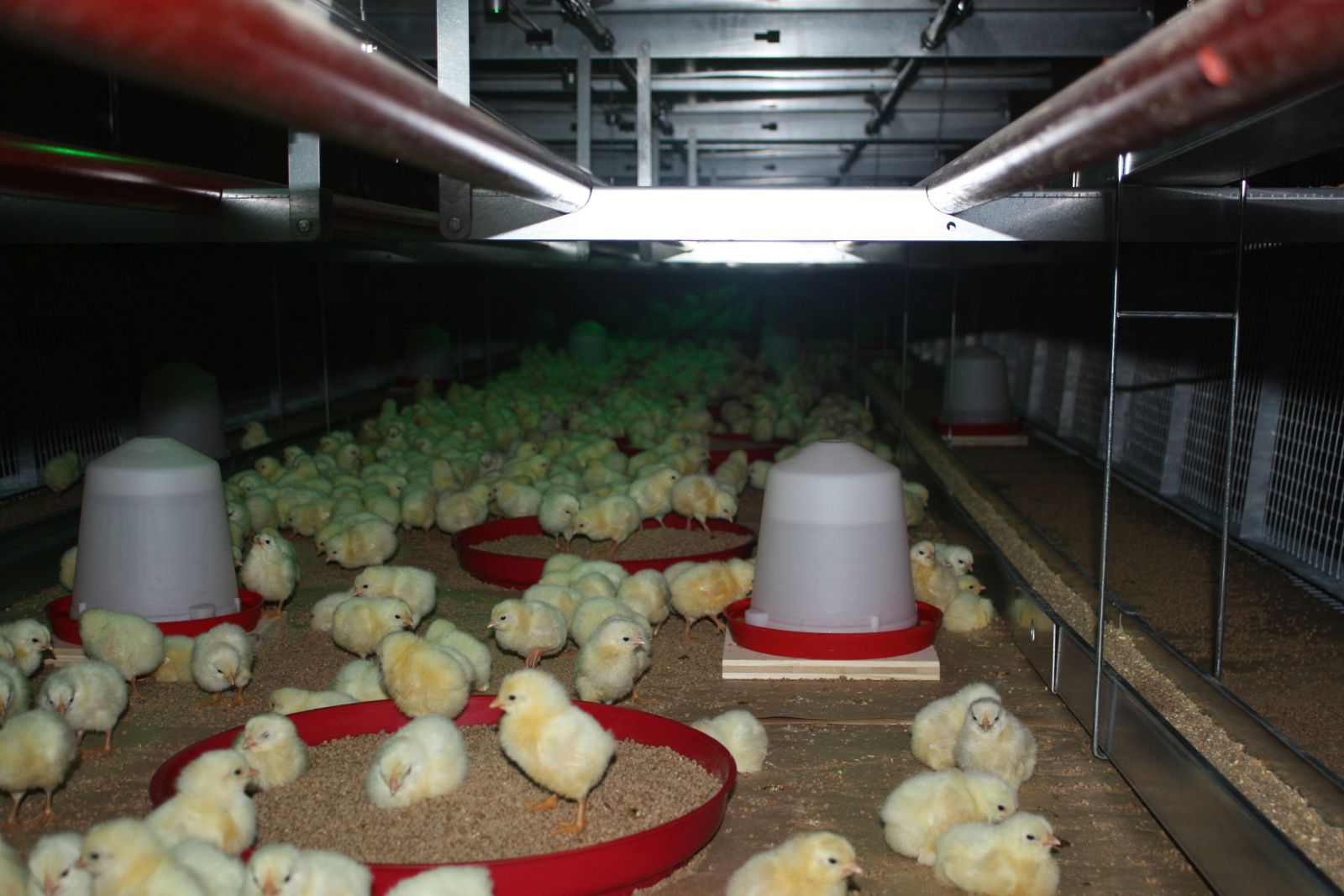 Zwei Mal pro Jahr werden 4000 Eintagesküken zu uns gebracht. Dieses Ereignis ist jedes Mal ein Riesen-Erlebnis für Gross und Klein. Es ist ein wunderschönes Gefühl diese kleinen, flauschigen Küken in den Händen zu halten. Die Farbe der kleinen Küken ist noch nicht bei allen erkennbar. Die ersten Tage muss die Temperatur im Stall relativ hoch sein, etwa 30-35 grad. Der Stall wird vorgängig aufgeheizt. Nun ist es wichtig, dass alle die Futter- und Wasserstellen bald finden und lernen zu trinken und zu essen. Sie wachsen schnell und werden von Tag zu Tag kräftiger. Das Biofutter kaufen wir von Lehmann. Ihm liefern wir auch unser Getreide.